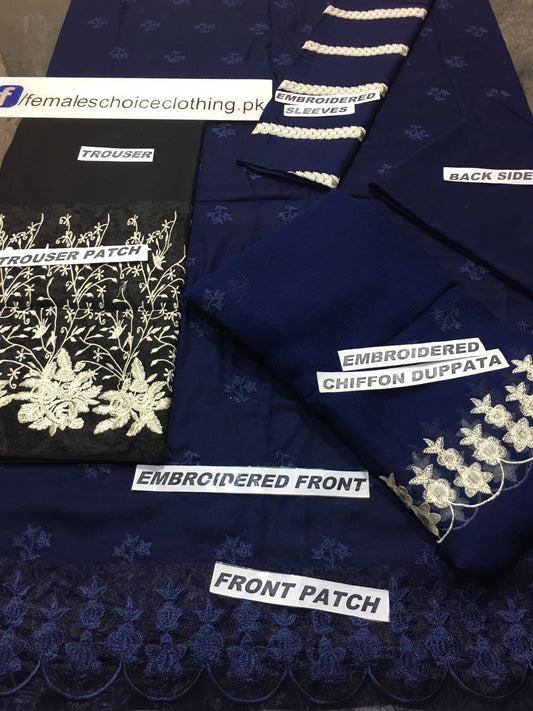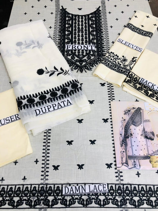 Maria B Chikenkari Embroidered lawn Three Piece MB-0126