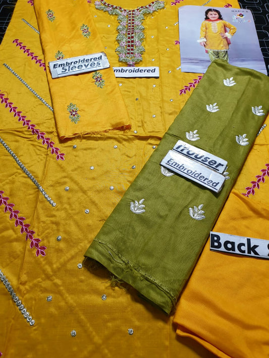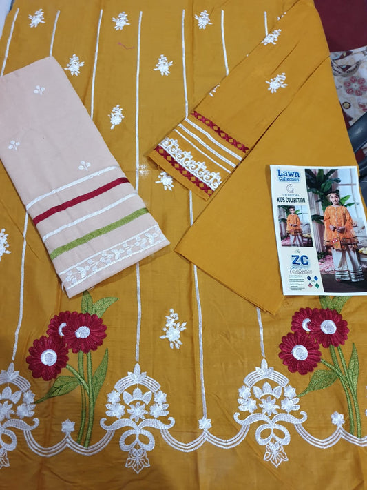 Maria B D-314 Musturd kids Wear Lawn Embroidered two piece