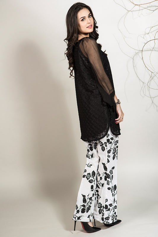 MariaB D-472 Black Color Embroidered Velvet two piece Winter Collection