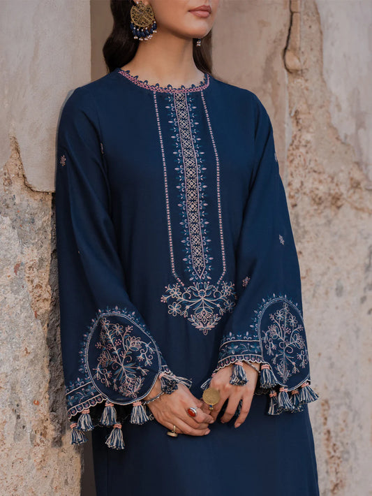 Nishat 539 Blue Dhanak Embroidered three piece With poly Woolen Shawl