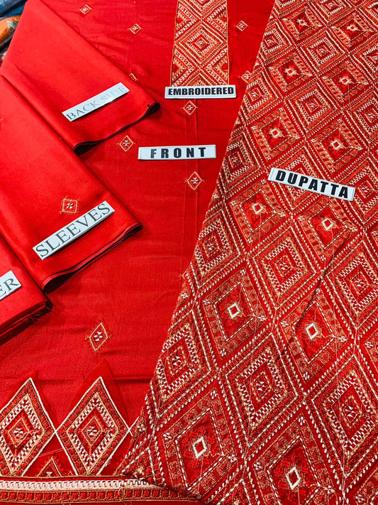 Bareeze FCC-199 Red Embroidered Dhanak Three Piece Winter Collection