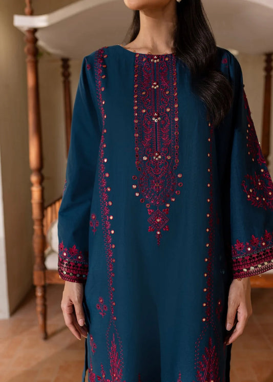 FCC-189 Blue Embroidered Dhanak Three Piece Winter Collection